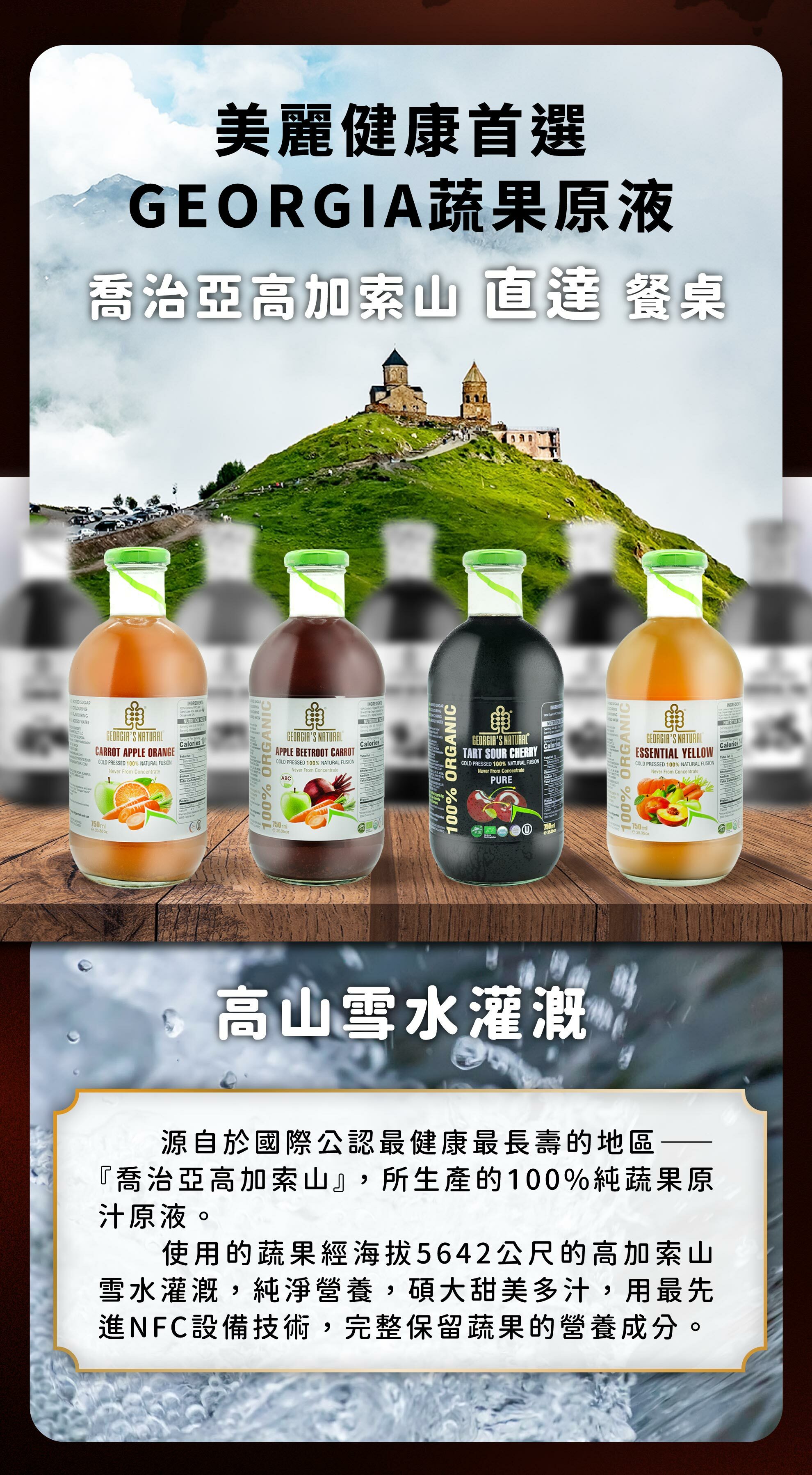 .喬治亞高加索山原瓶冷壓慢磨高酵蔬果汁