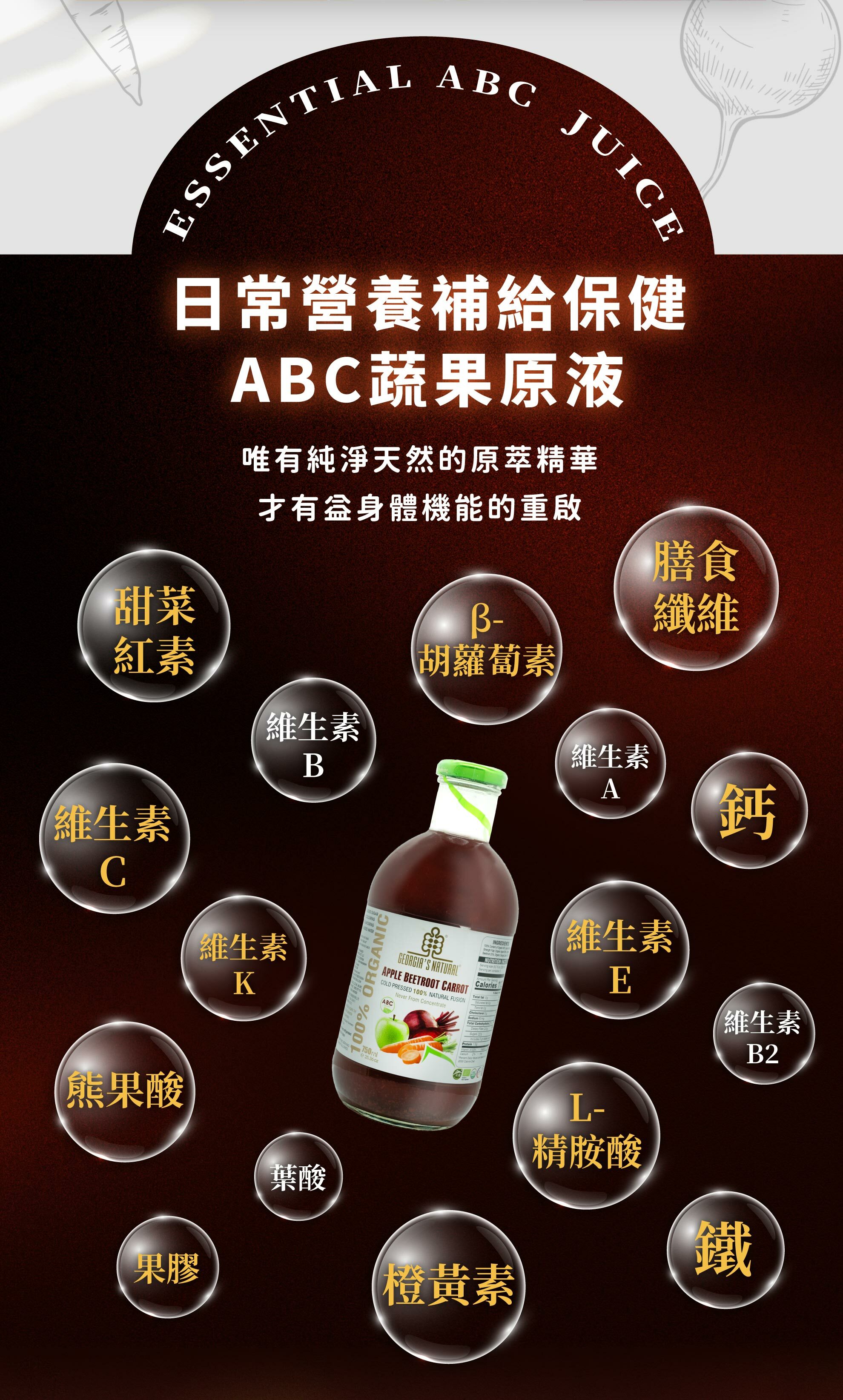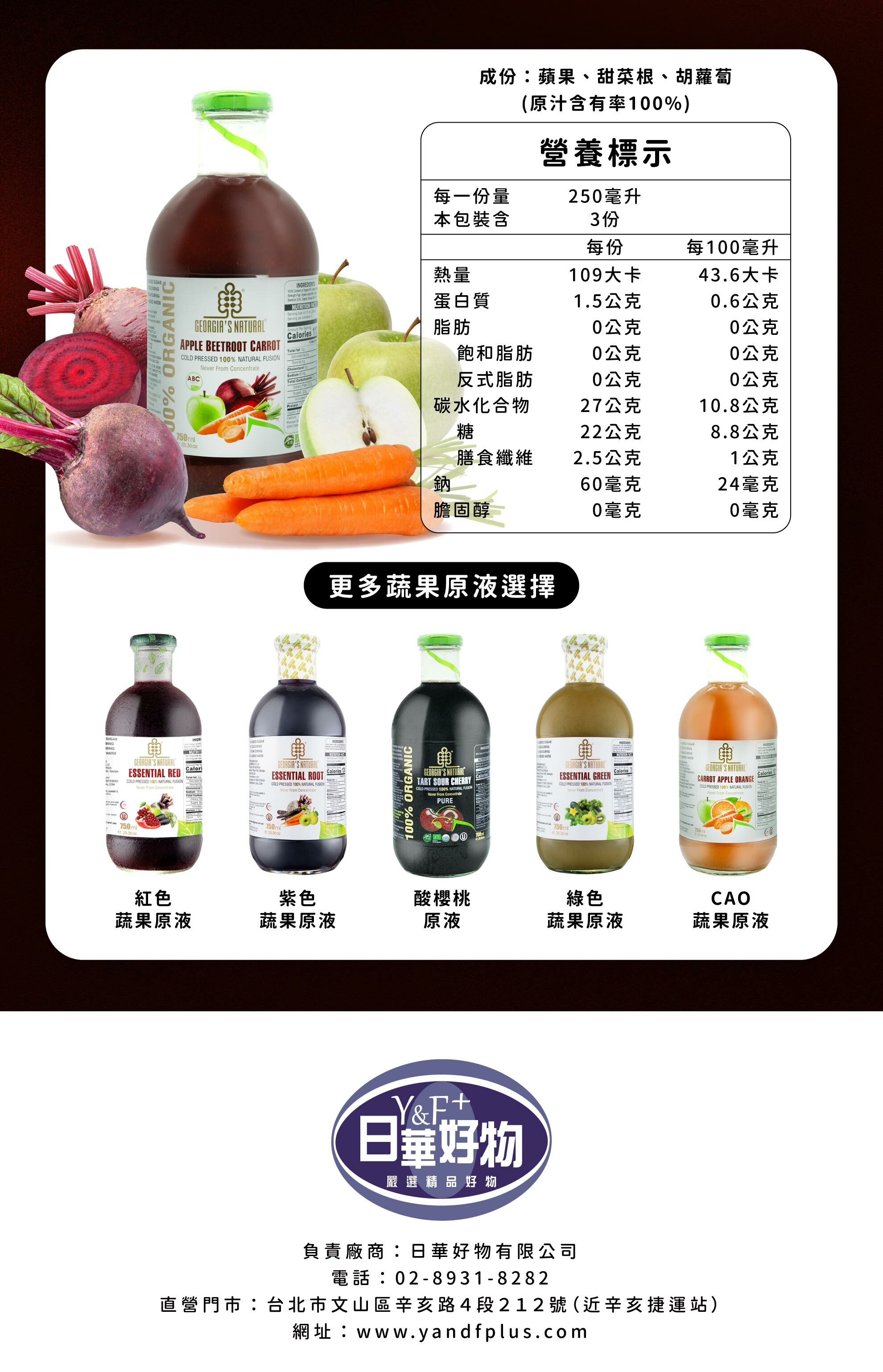 成份:蘋果、甜菜根、胡蘿蔔(原汁含有率100%)