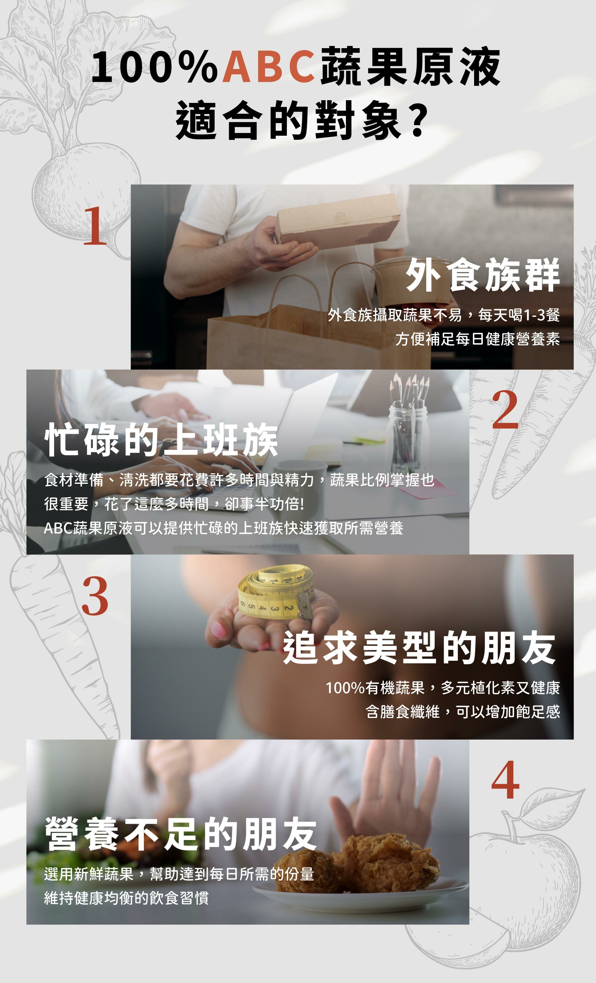 .無加糖、非濃縮加水還原,百分百蔬果汁