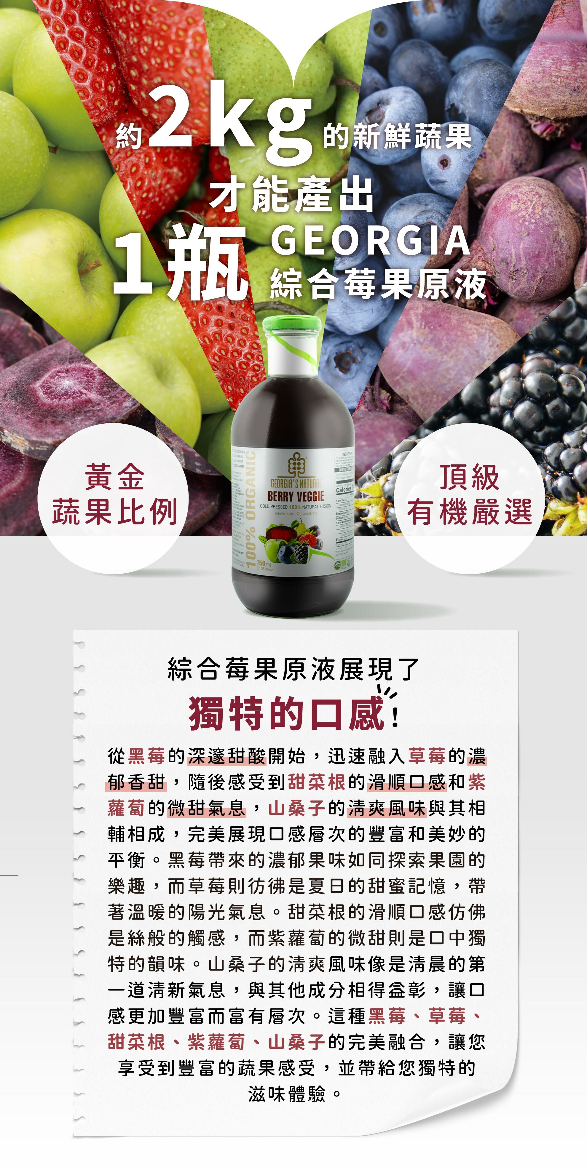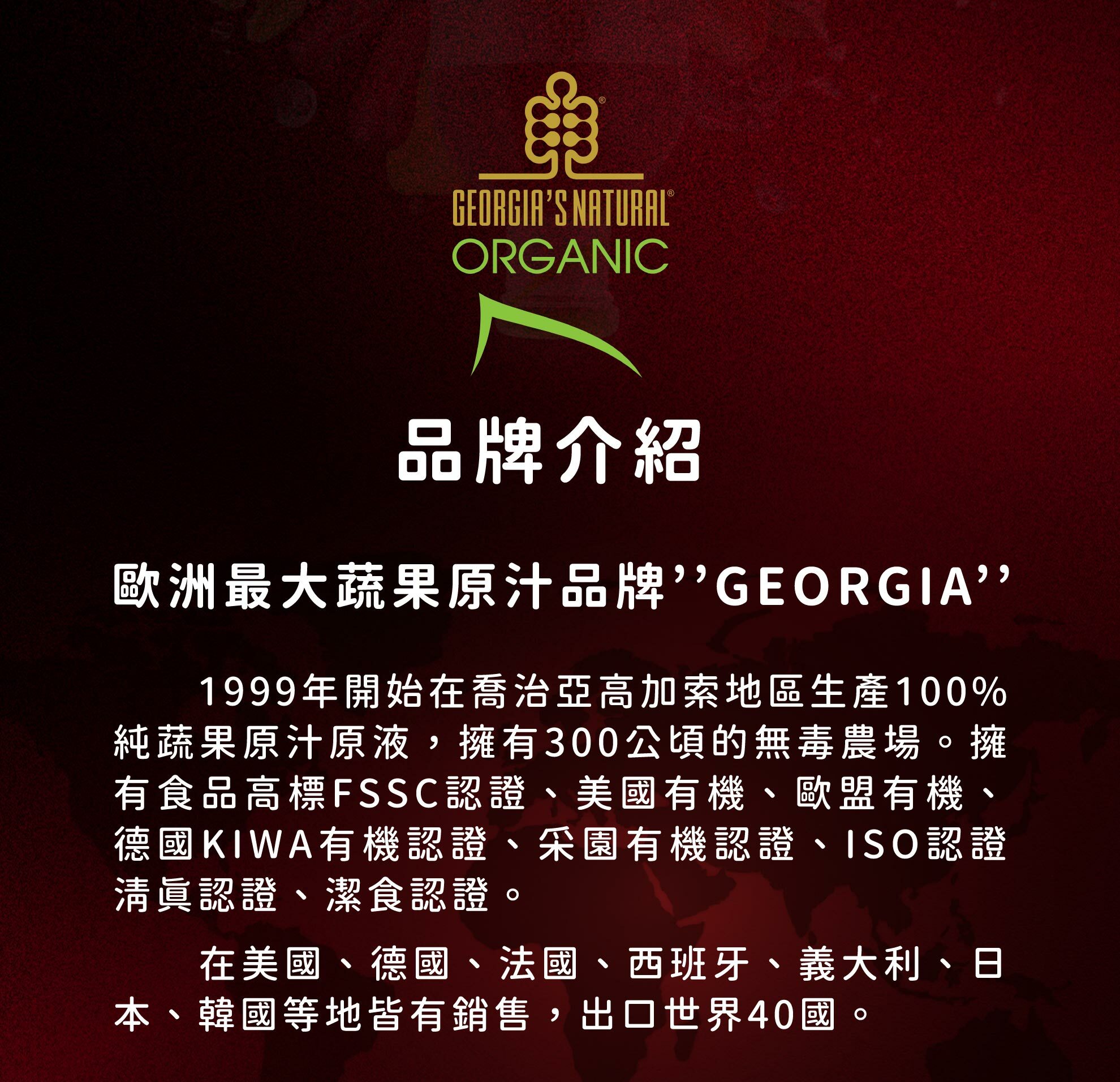 15.GEORGIA蔬果汁有8款可選【綠色蔬果汁、紫色蔬果汁、紅色蔬果汁、黃色蔬果汁、粉色蔬果汁、ABC蔬果汁、CAO蔬果汁、酸櫻桃甜菜根汁】