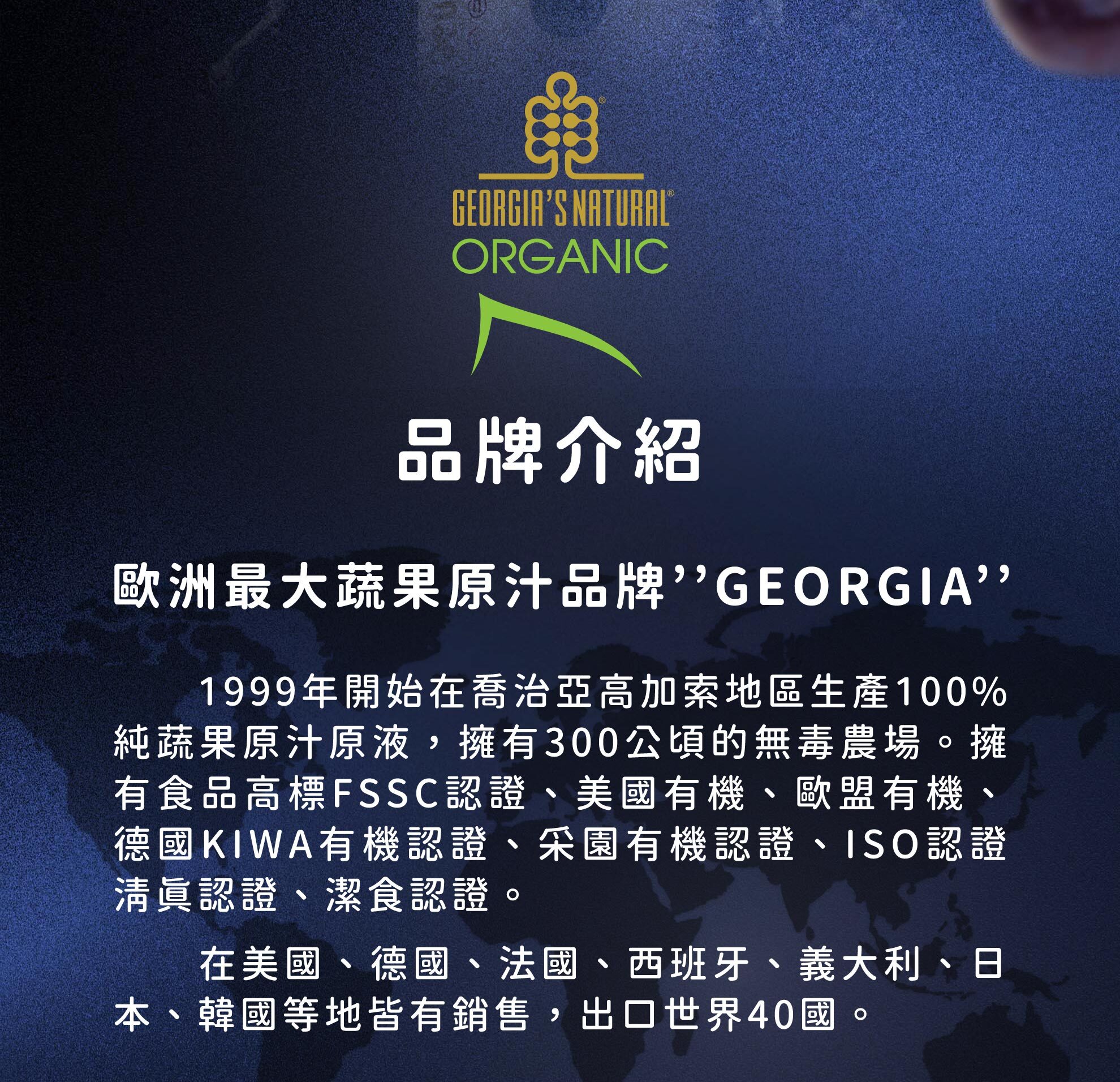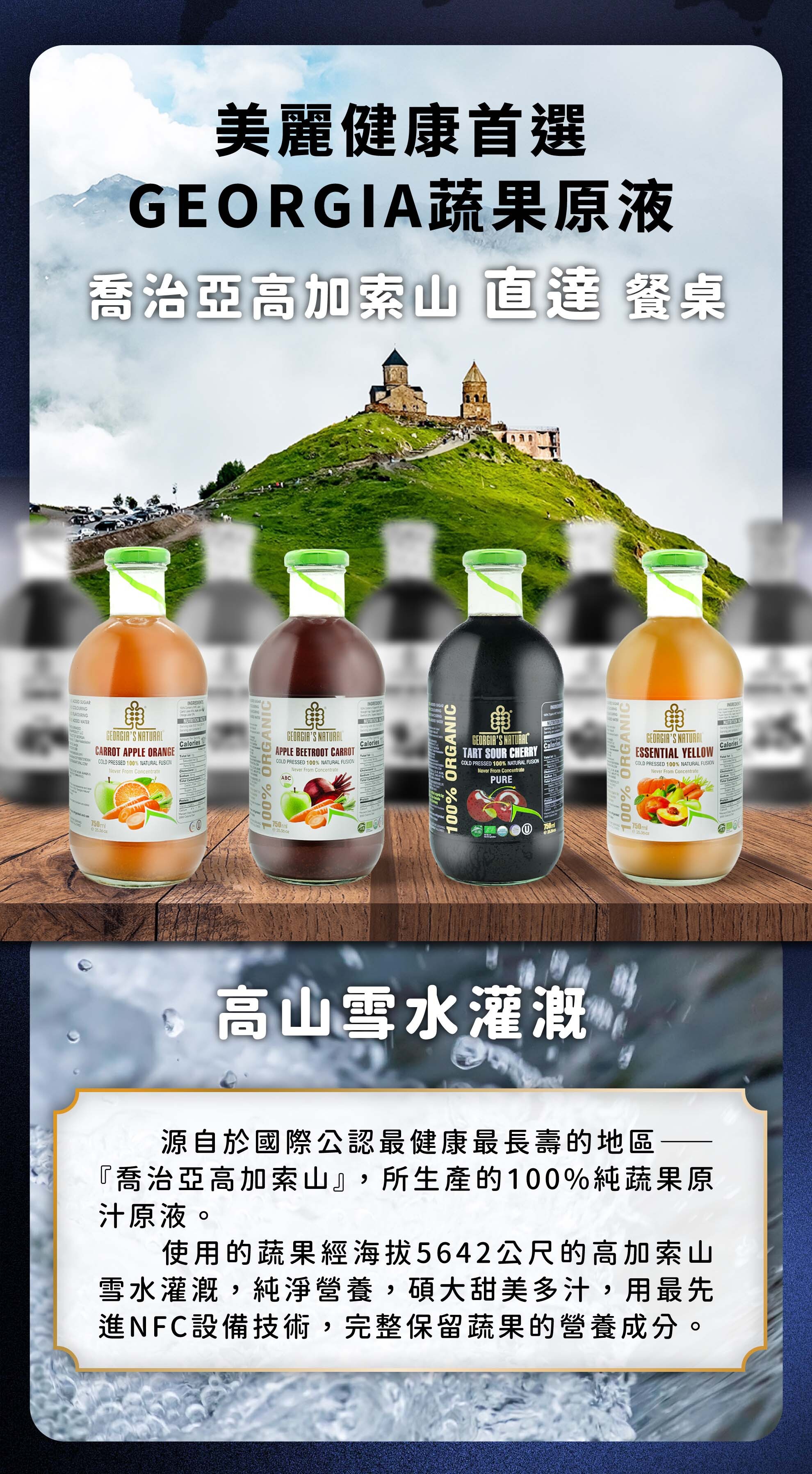 1.喬治亞原裝原瓶進口,歐洲最大有機液態冷壓蔬果汁