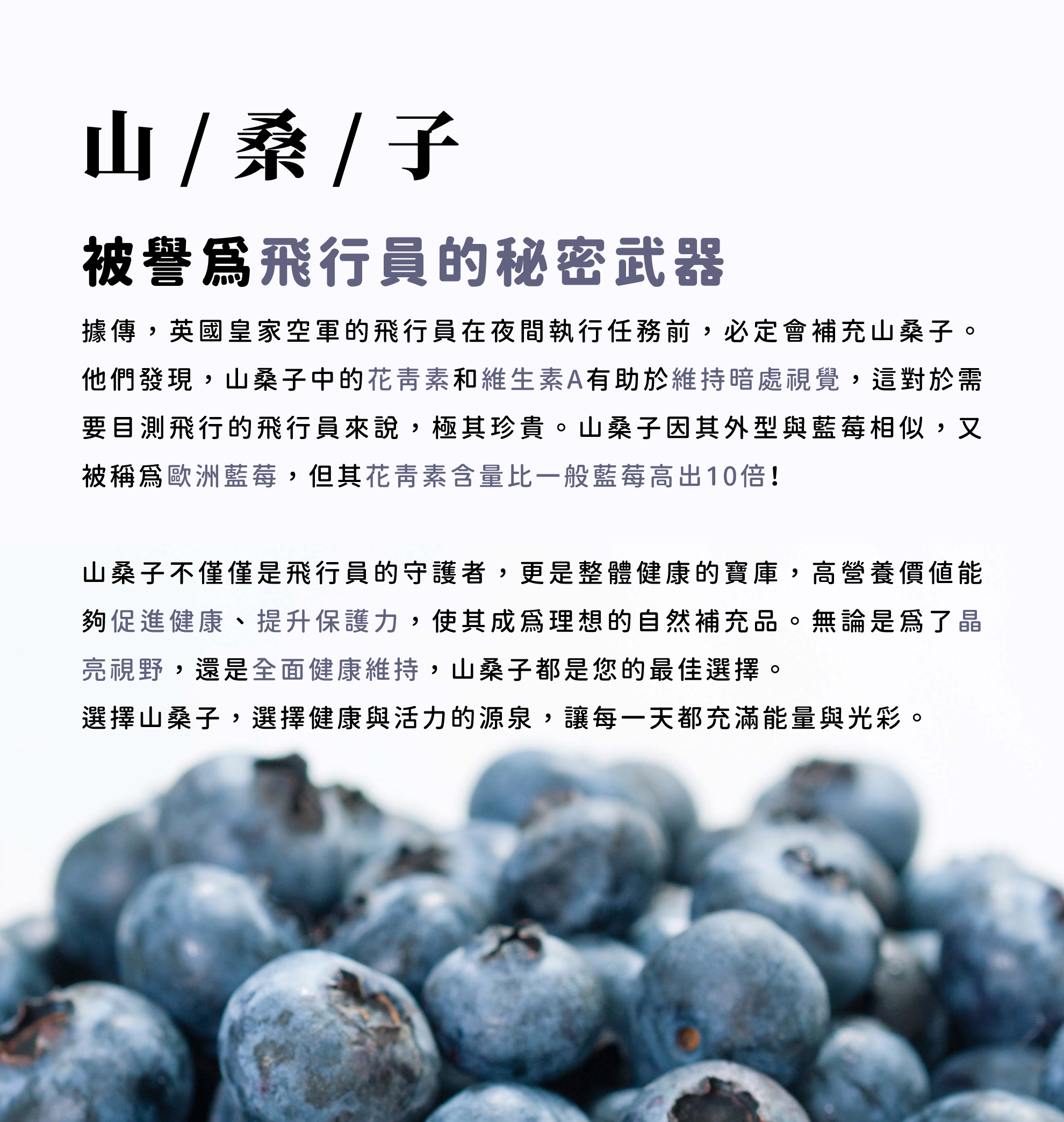 5.對於時常需要目測飛行的飛行員是很珍貴的莓果類,山桑子也稱歐洲藍莓,不同於美國藍莓