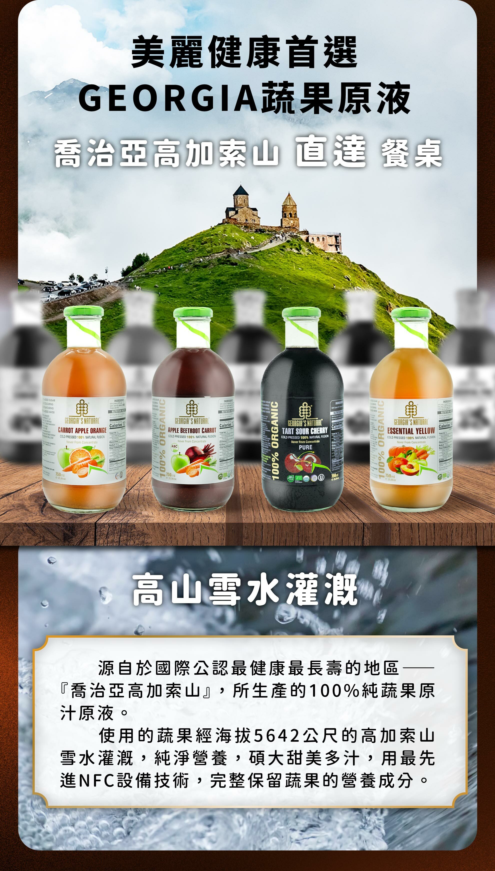 .喬治亞高加索山原瓶冷壓慢磨高酵蔬果汁