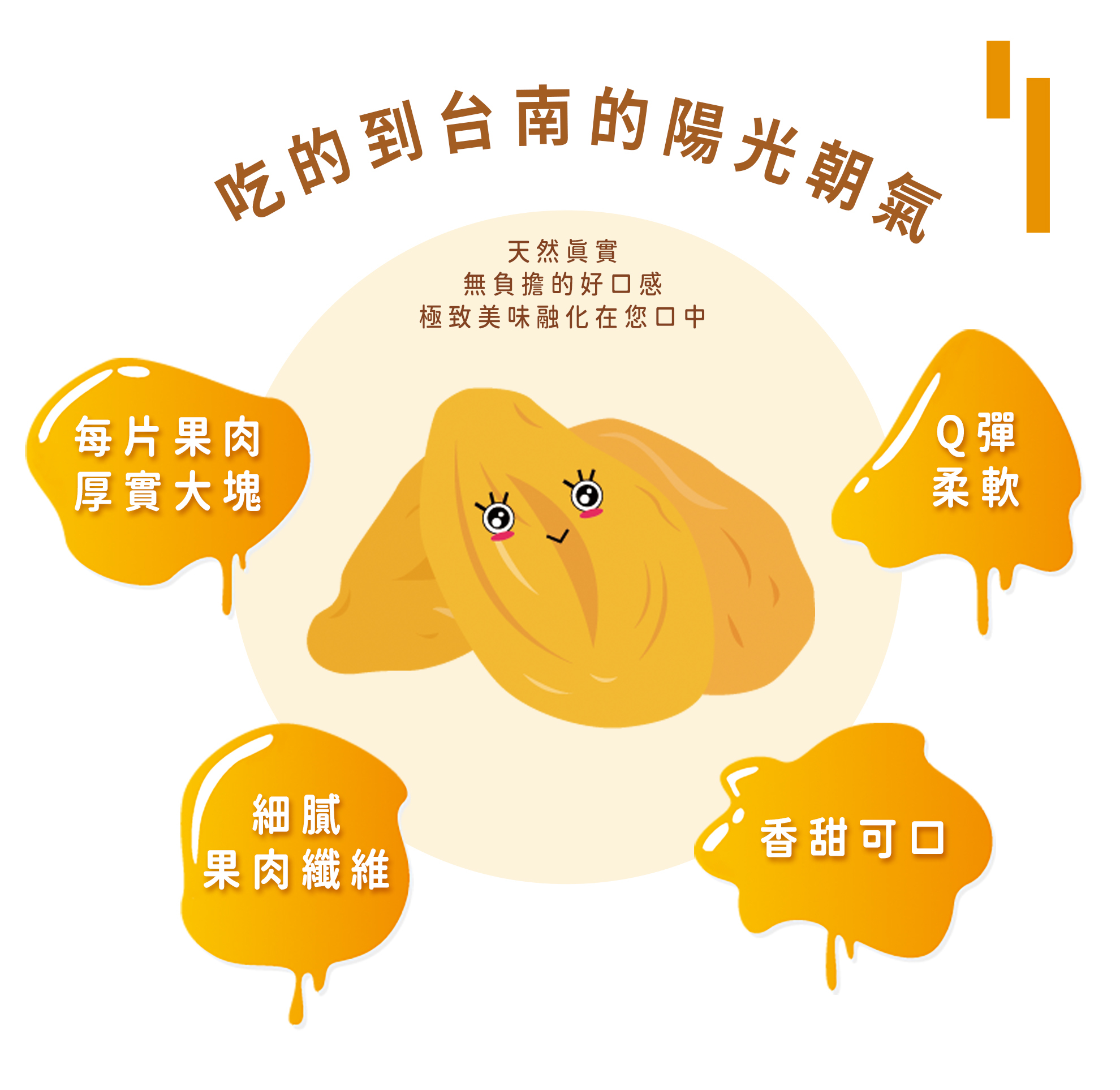 .選用台南玉井在欉紅愛文芒果,一顆芒果僅能製作兩片芒果乾