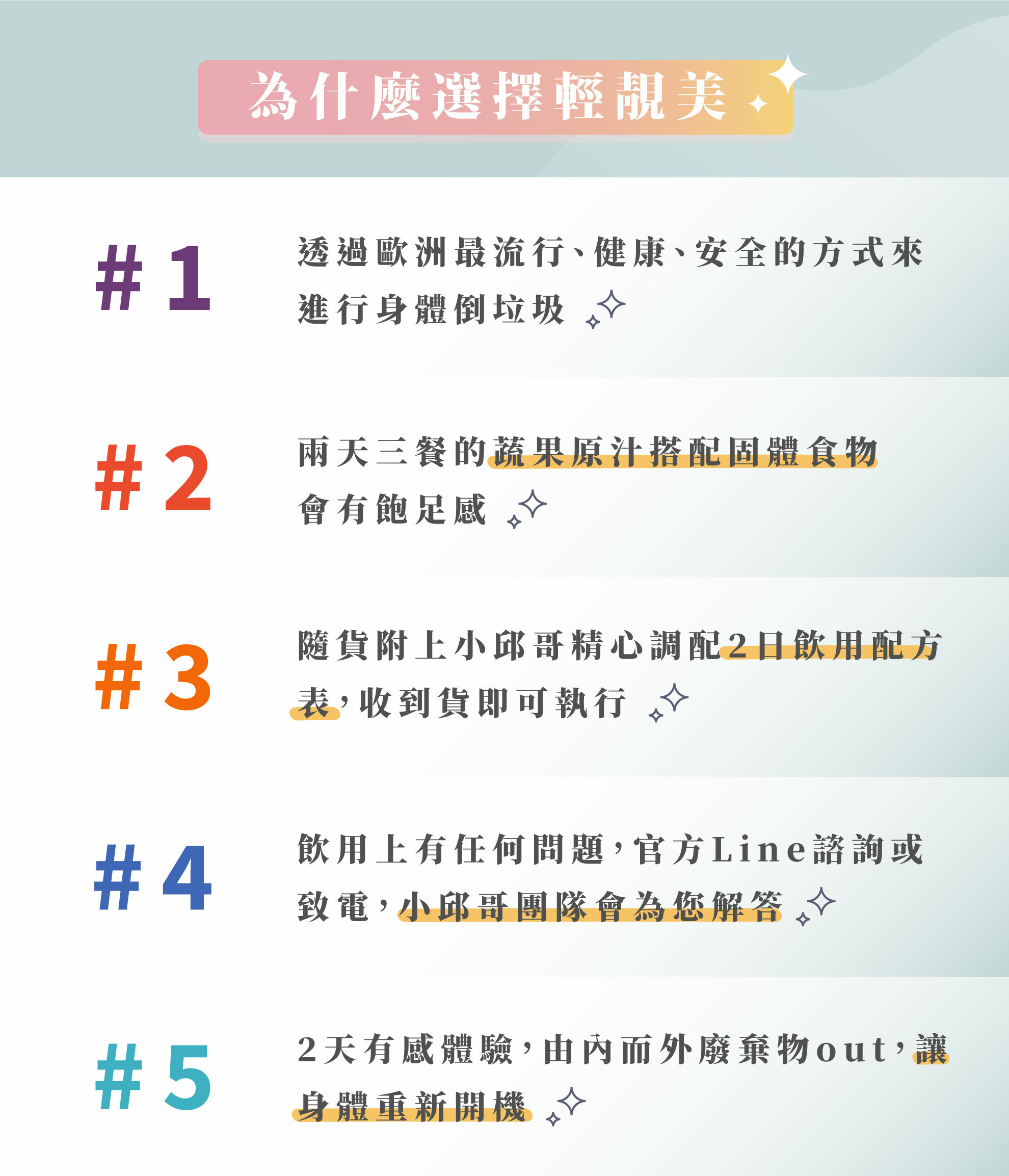 .輕靚美2日有感體驗有助維持理想體態、代謝垃圾