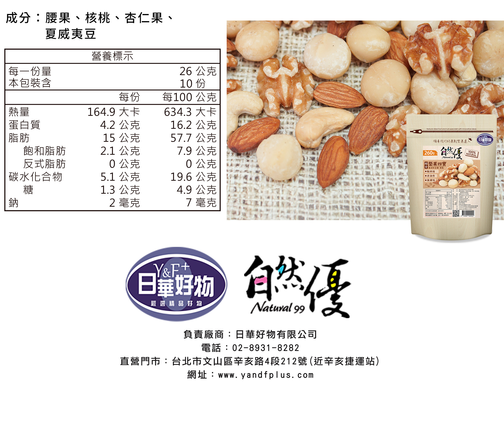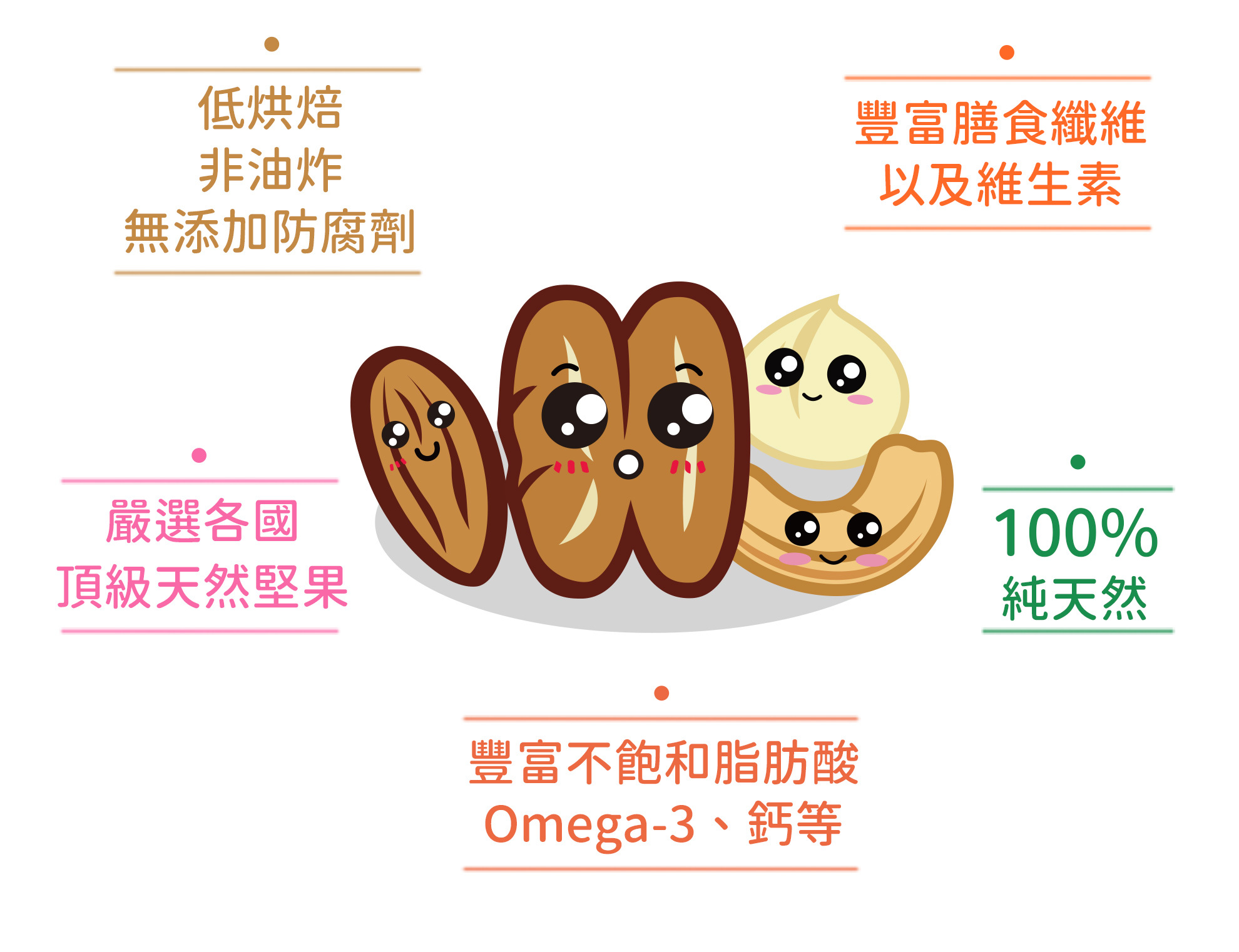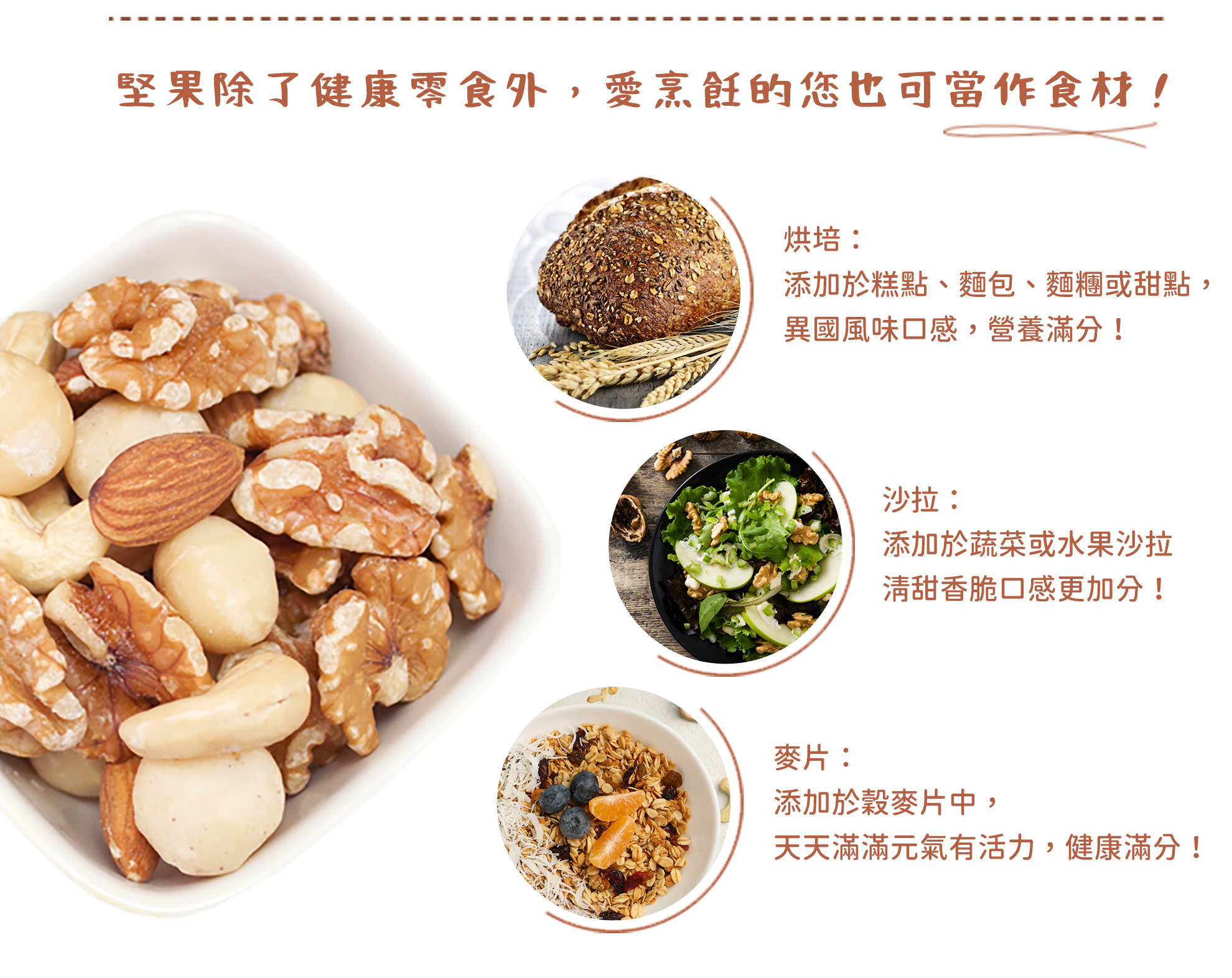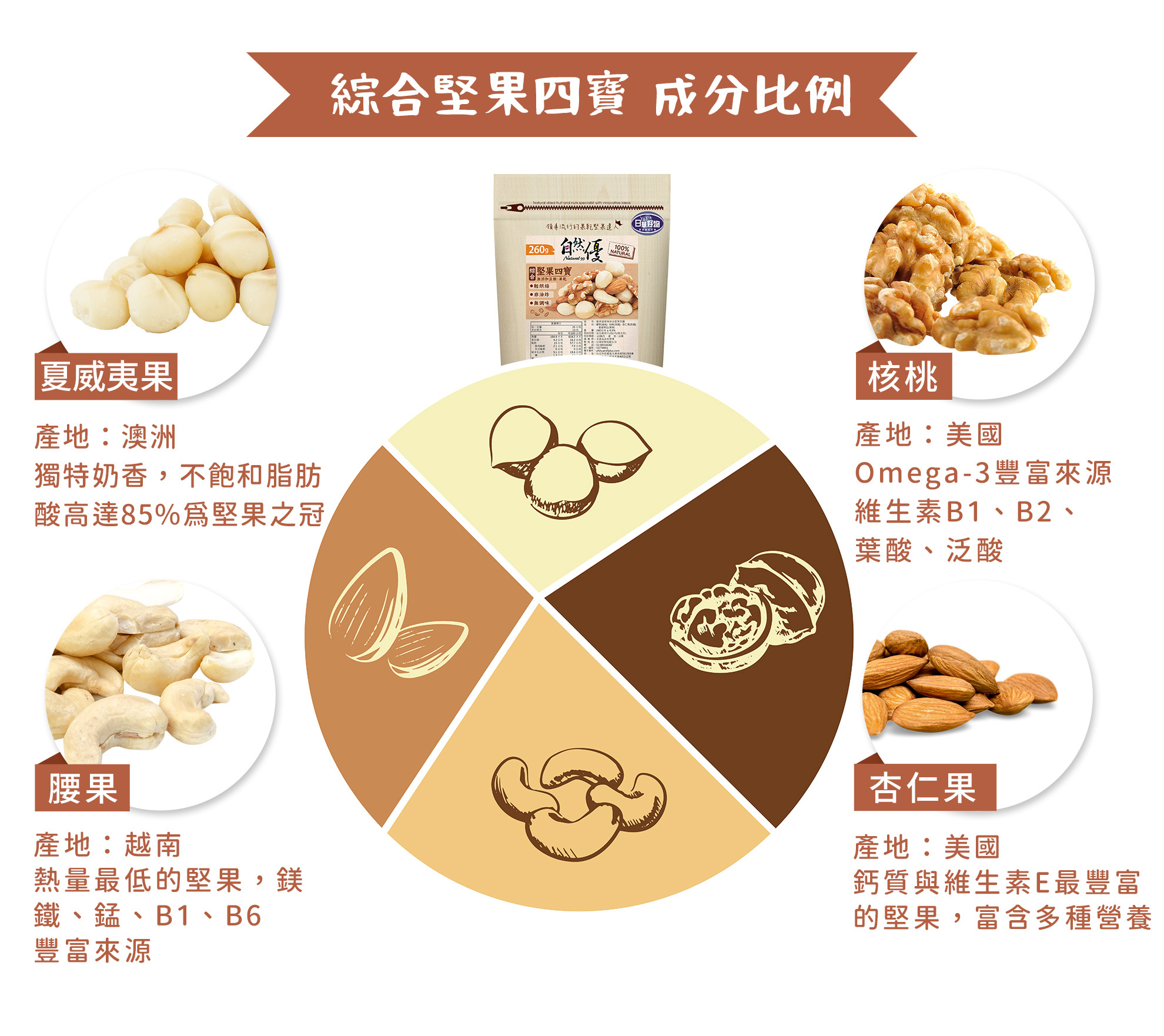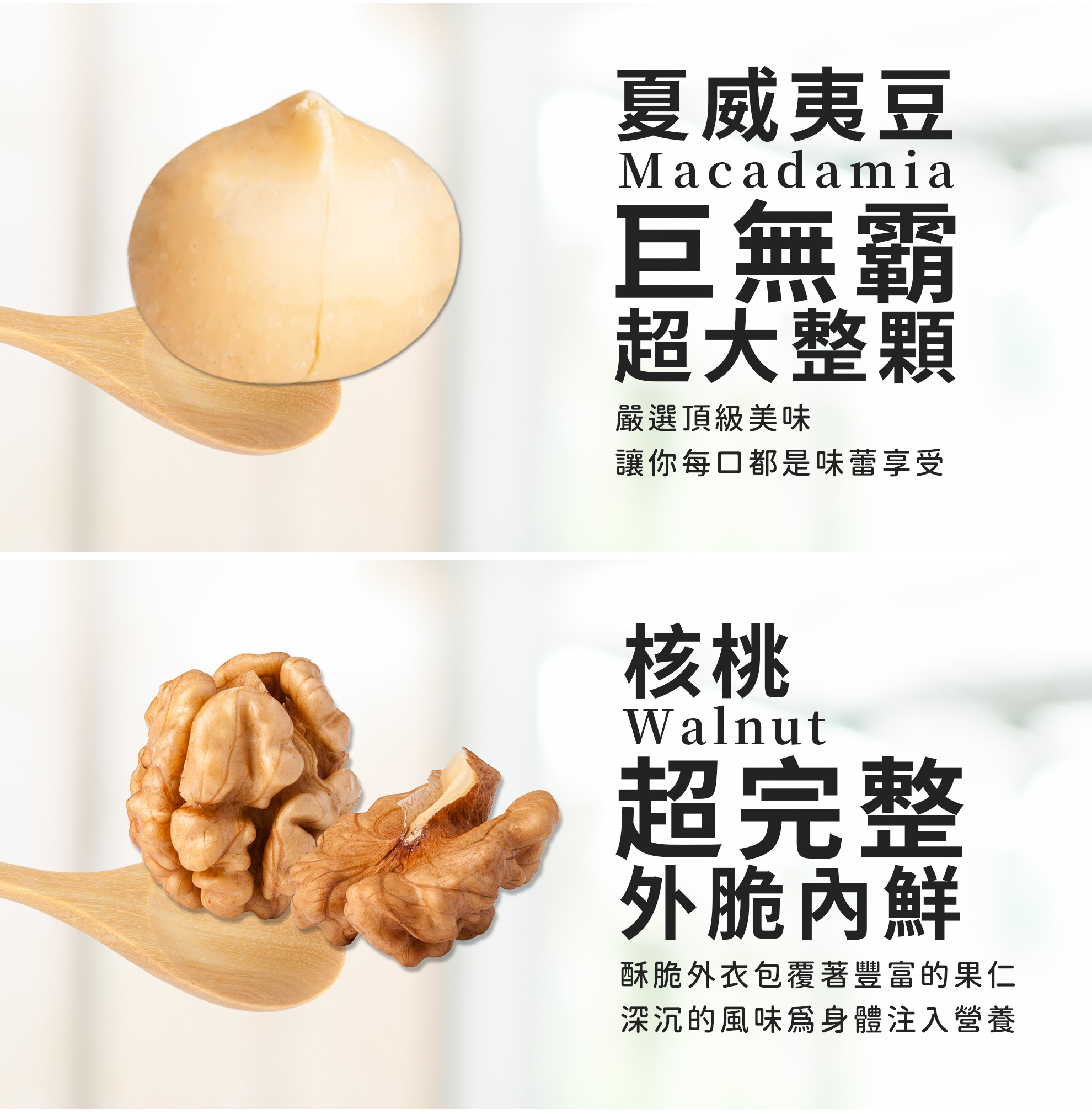 .內含越南腰果、澳洲夏威夷豆、美國核桃與胡桃