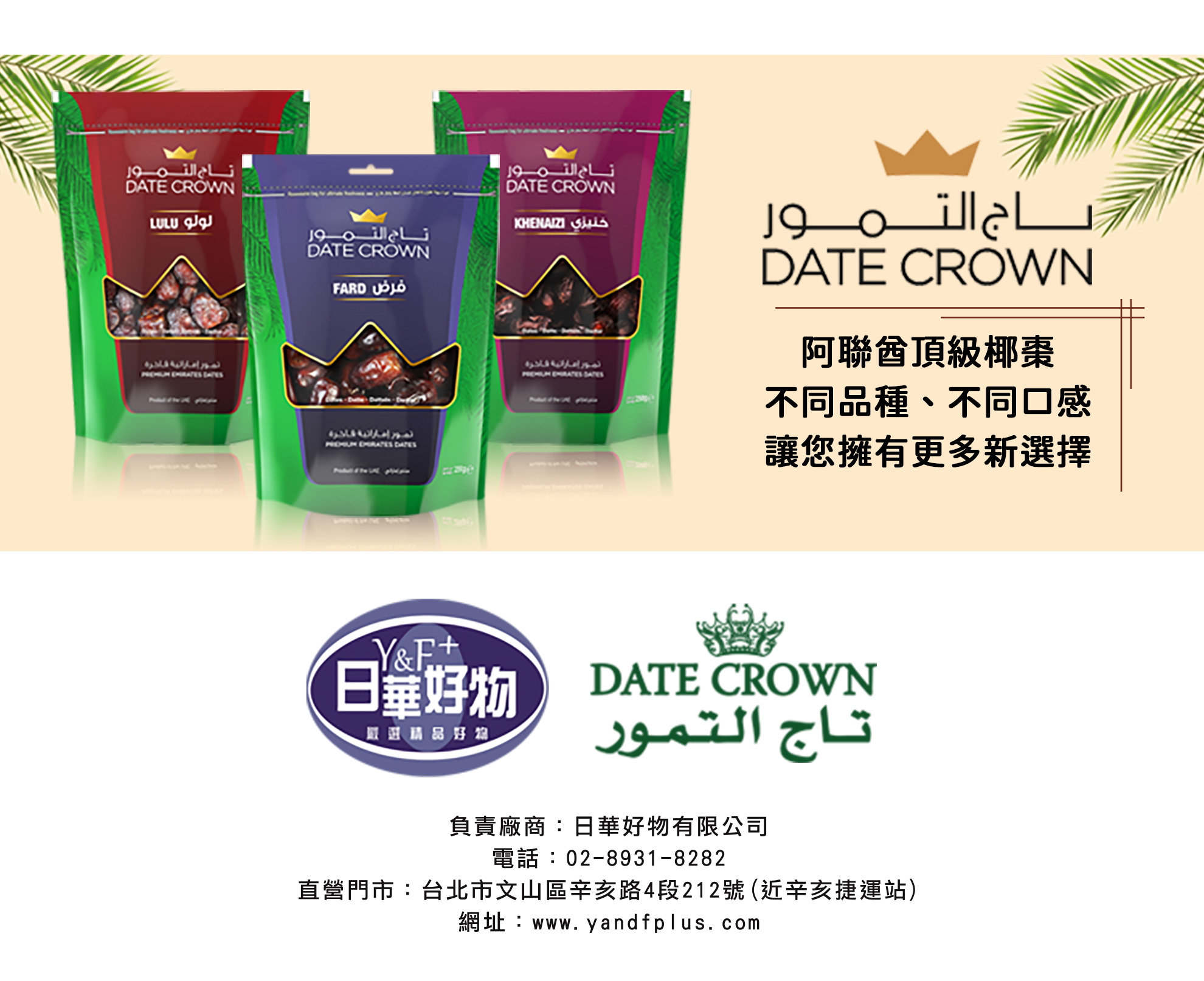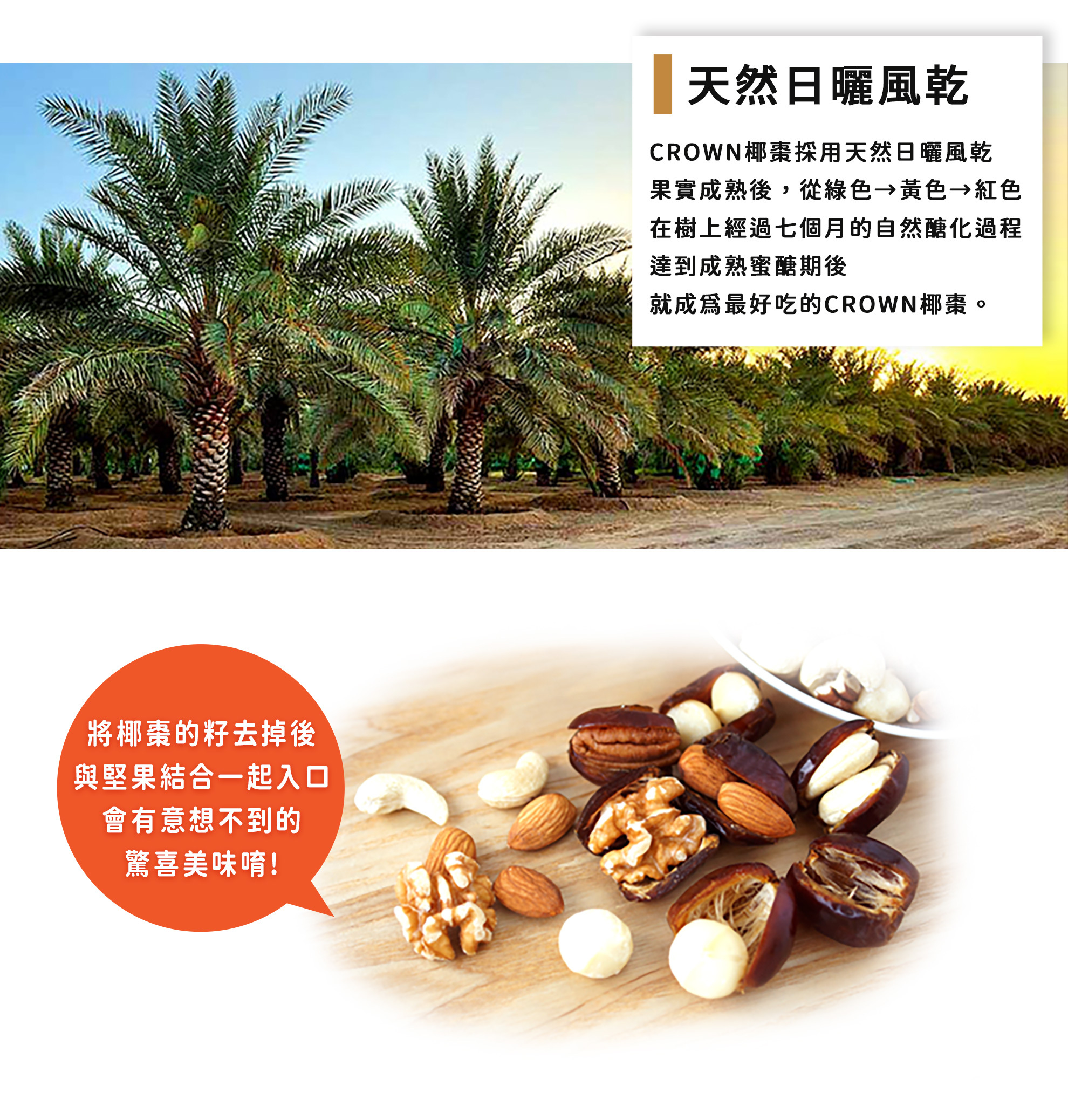 1.嚴選阿聯酋國營品牌CROWN,選用當季新鮮椰棗