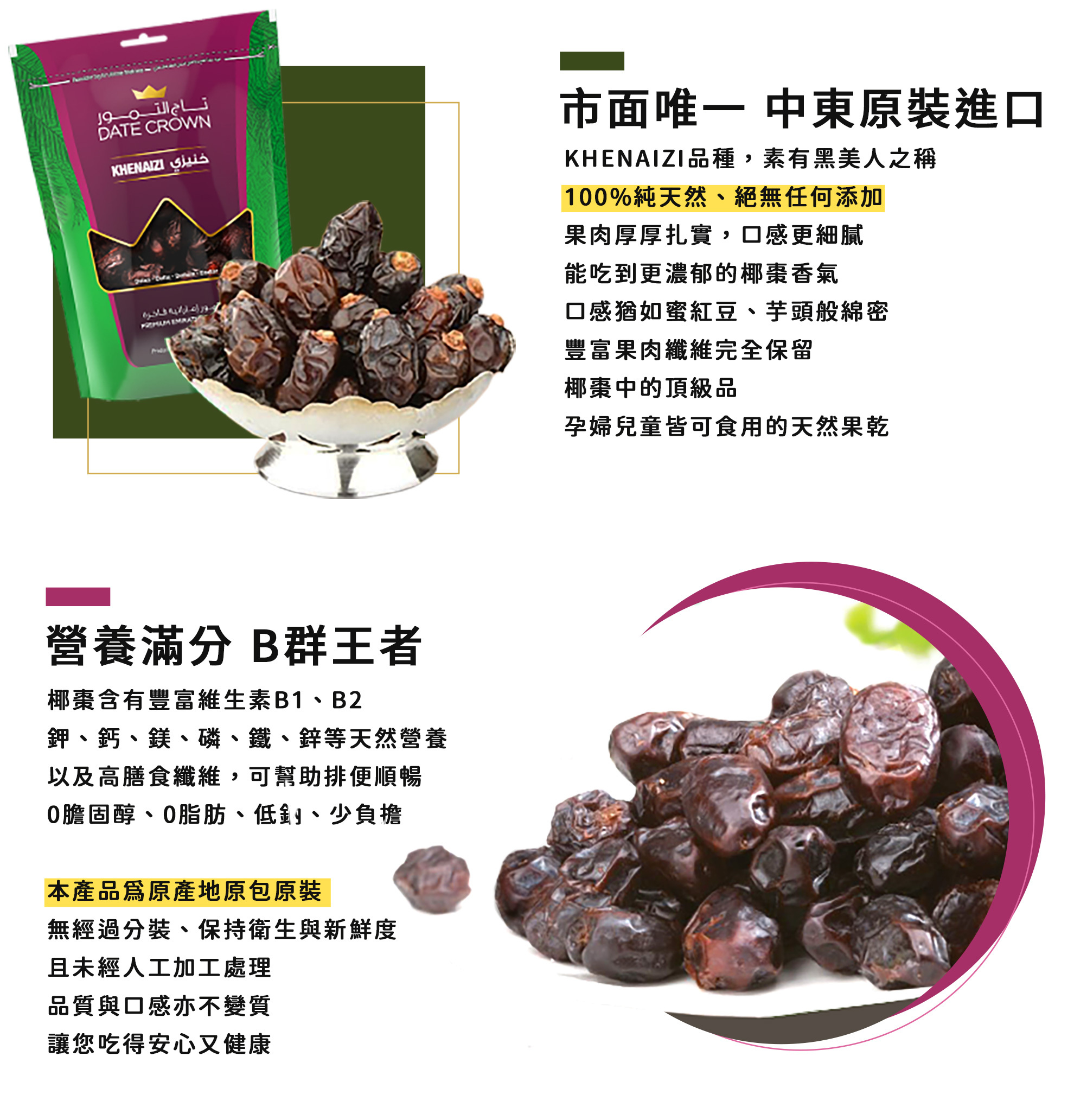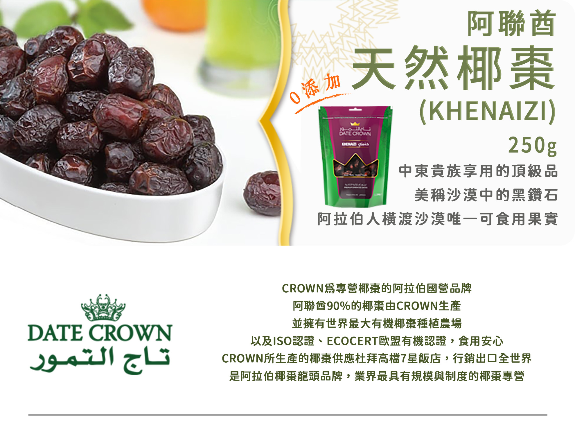 1.嚴選阿聯酋國營品牌CROWN,選用當季新鮮椰棗